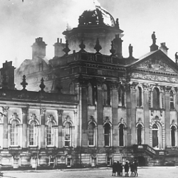 Fanned by strong winds, the fire destroyed rooms in the basement, principal and upper levels, as well as the dome, which collapsed into the Great Hall.